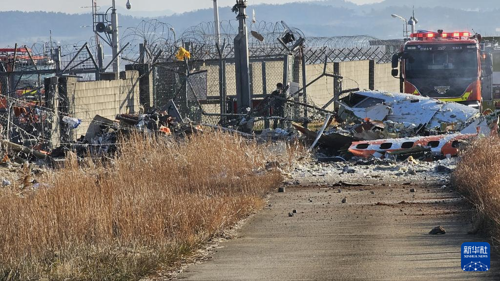 这是12月29日在韩国务安机场拍摄的事故现场。