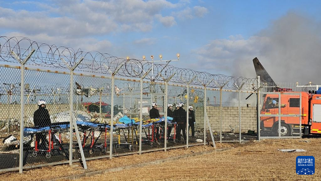 这是12月29日在韩国务安机场拍摄的事故救援现场。