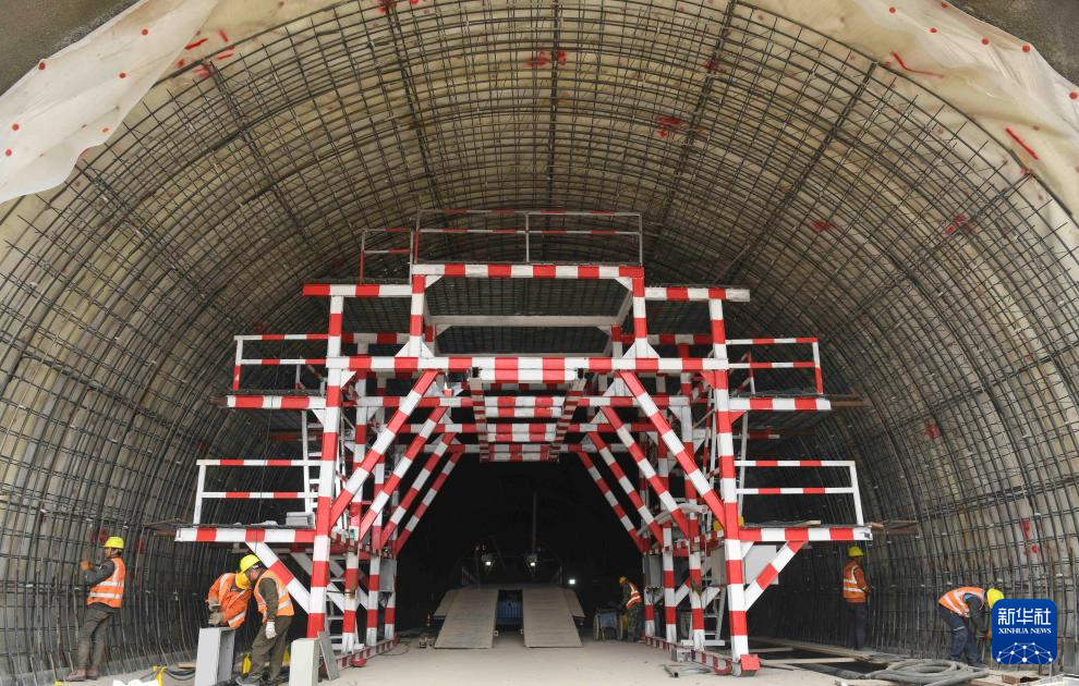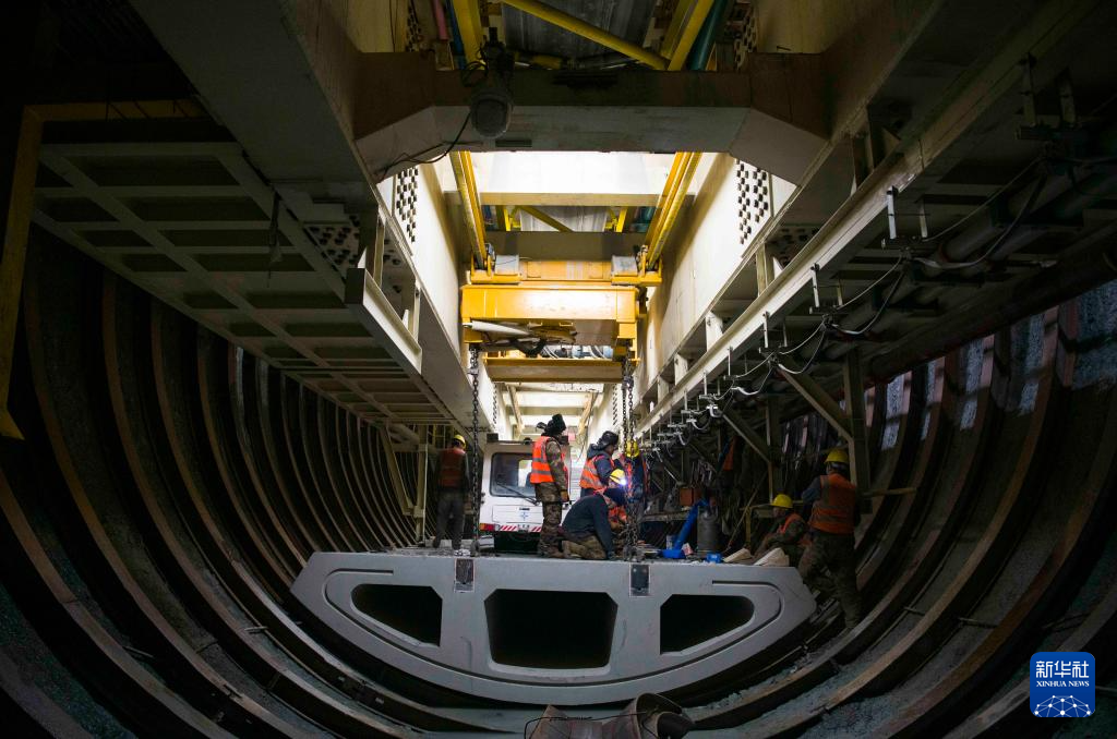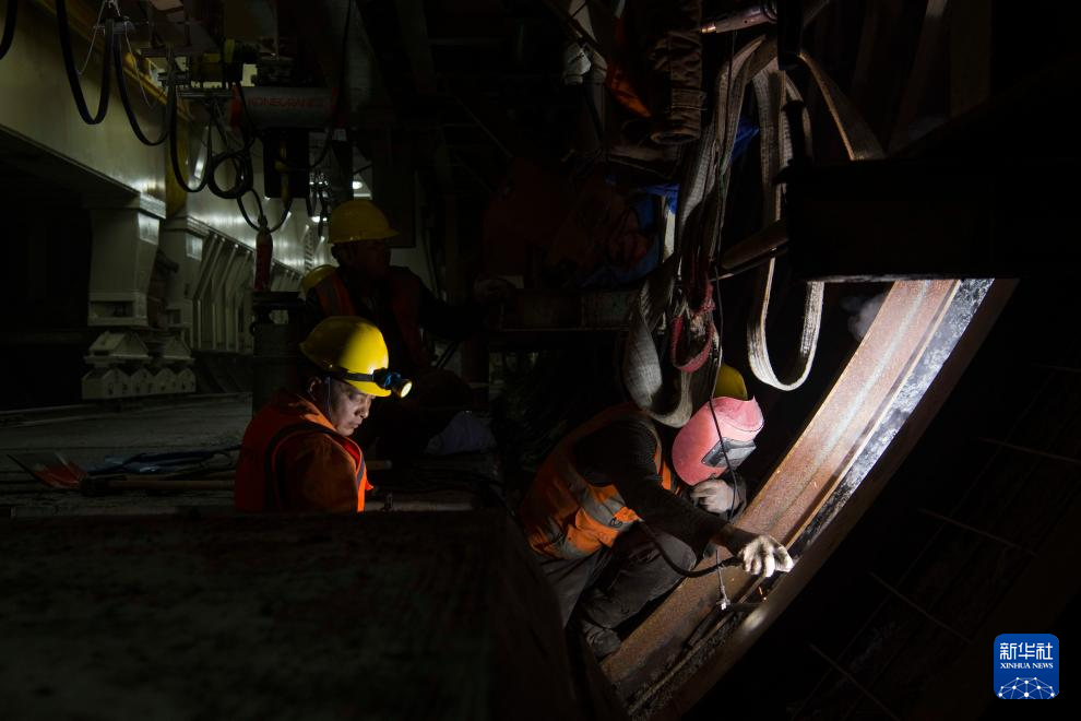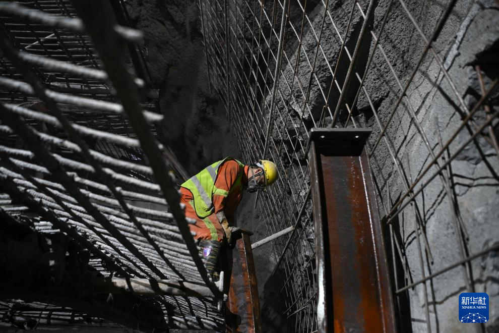 工人在乌尉高速公路天山胜利隧道内施工(2024年12月25日摄)。