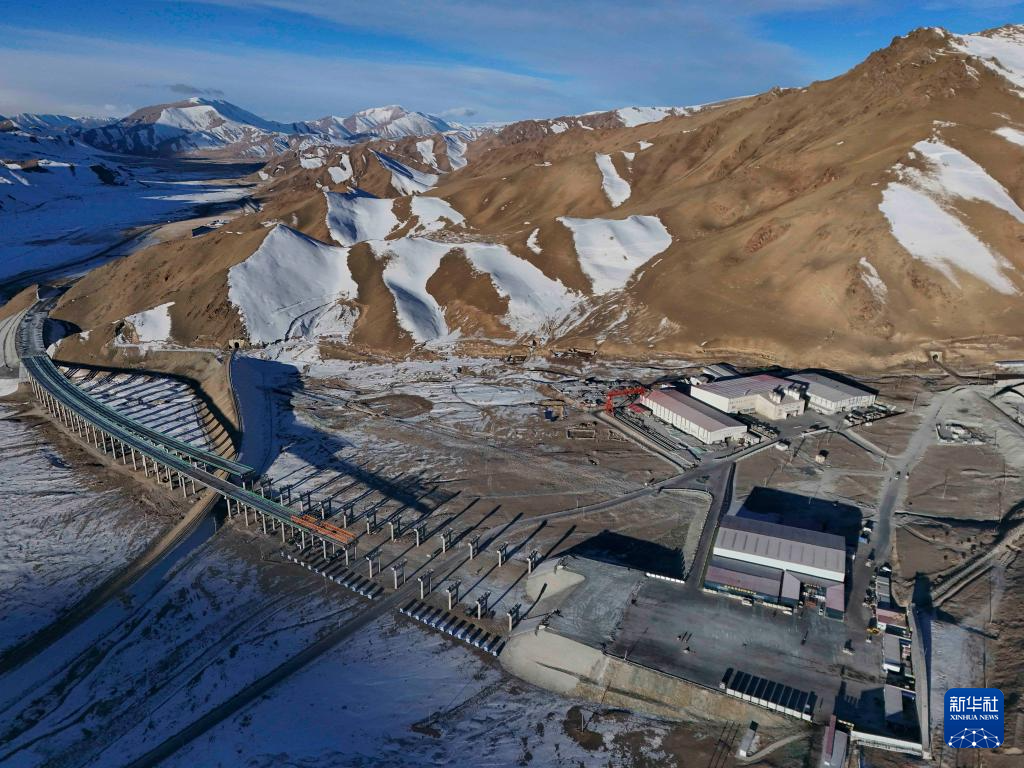 这是在新疆和静县拍摄的乌尉高速公路天山胜利隧道出口及建设中的公路(2024年12月25日摄,无人机照片)。