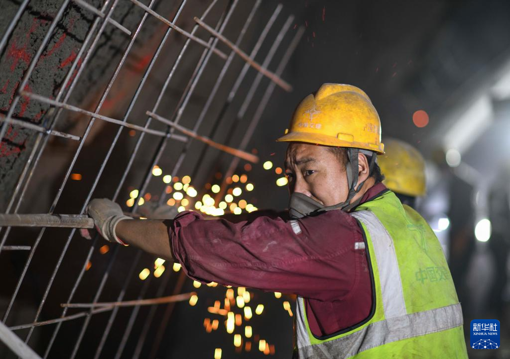 工人在乌尉高速公路天山胜利隧道内进行焊接作业(2024年12月25日摄)。