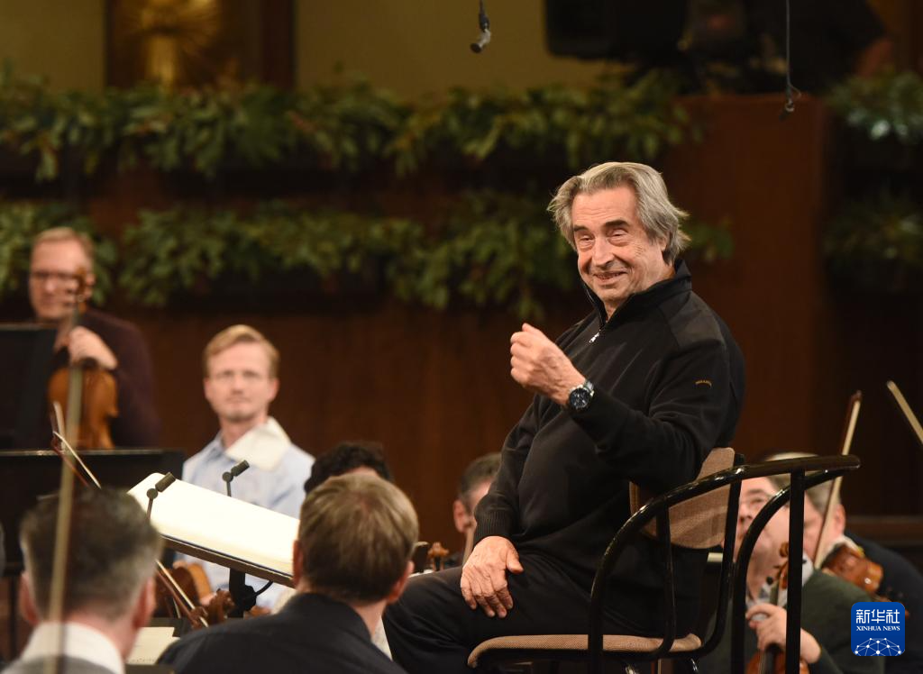 12月28日,在奥地利首都维也纳,指挥家穆蒂和维也纳爱乐乐团进行彩排。