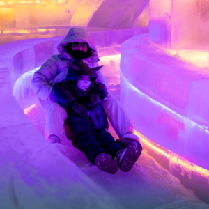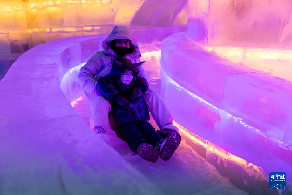 12月30日,人们在第51届冰灯艺术游园会现场游玩。