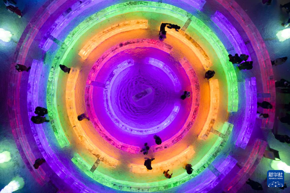 12月30日,人们在第51届冰灯艺术游园会现场游玩(无人机照片)。