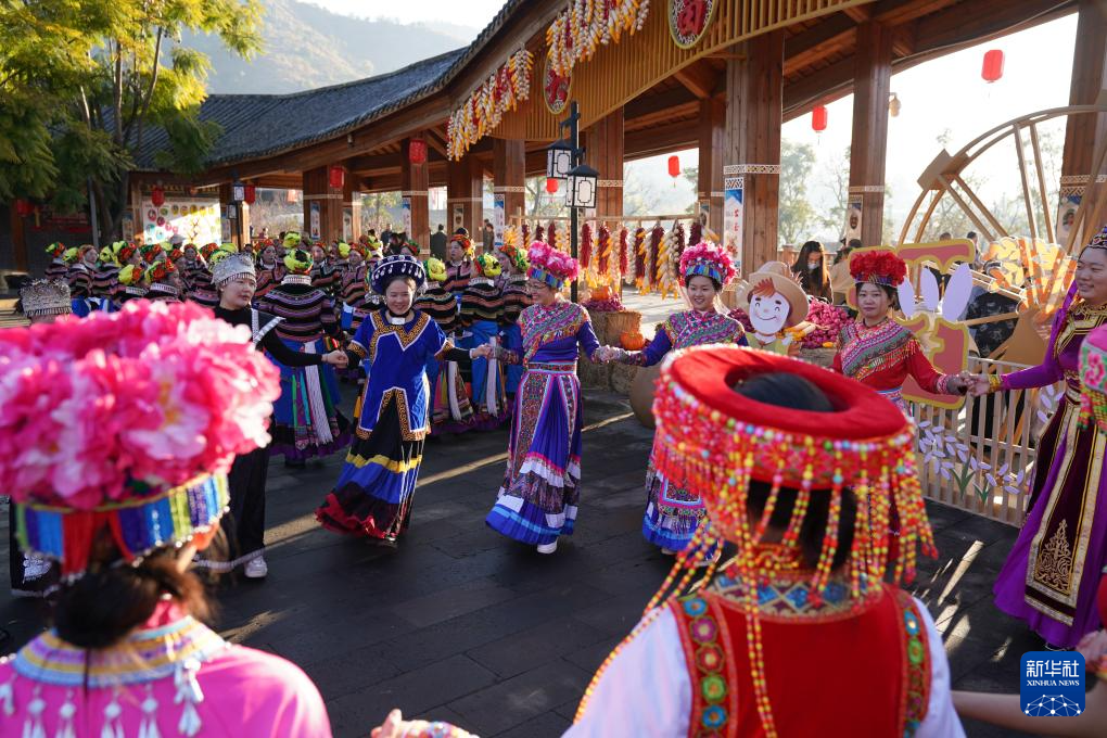 12月30日,在四川省攀枝花市米易县龙华村,当地群众身着特色服饰表演。