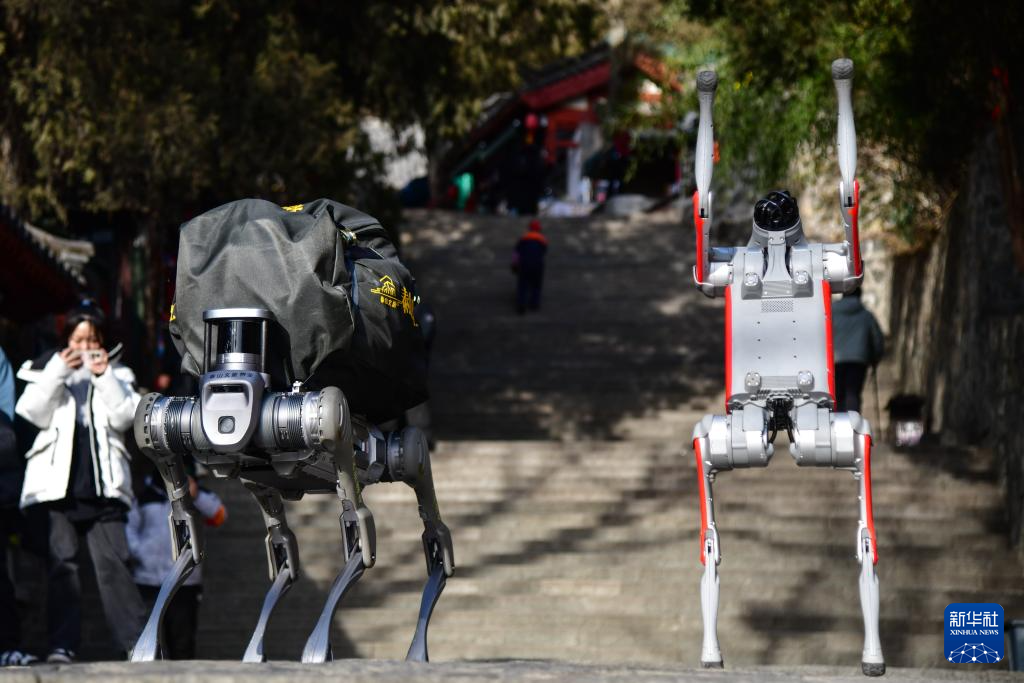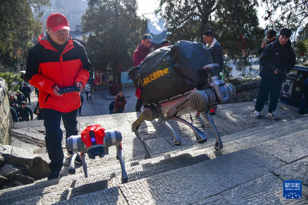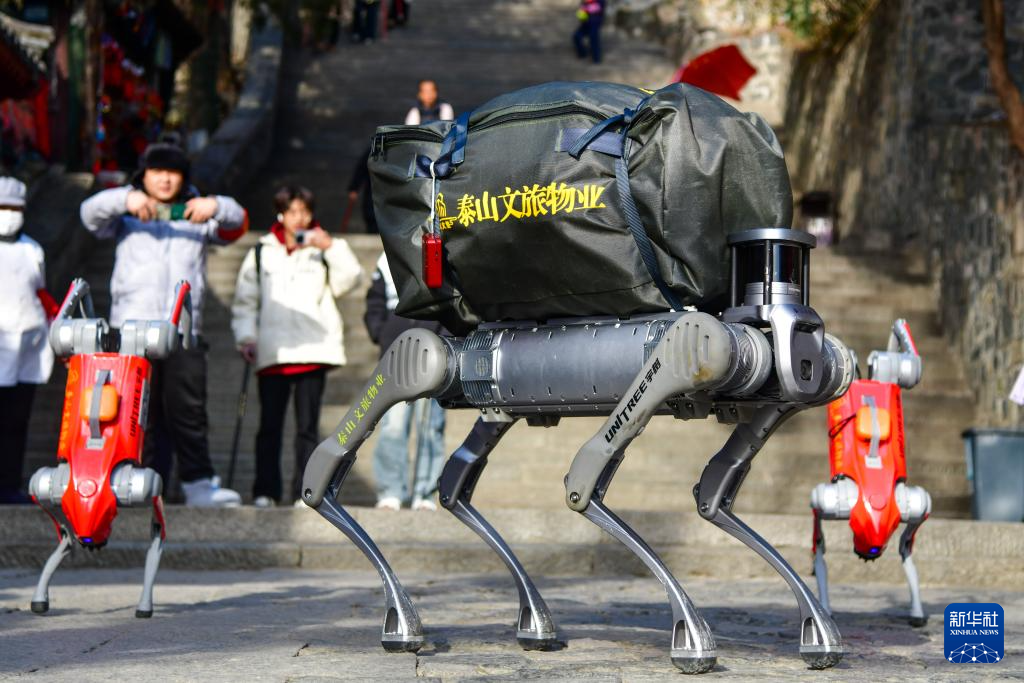 12月30日,在山东省泰安市泰山景区,机器狗进行登山测试。