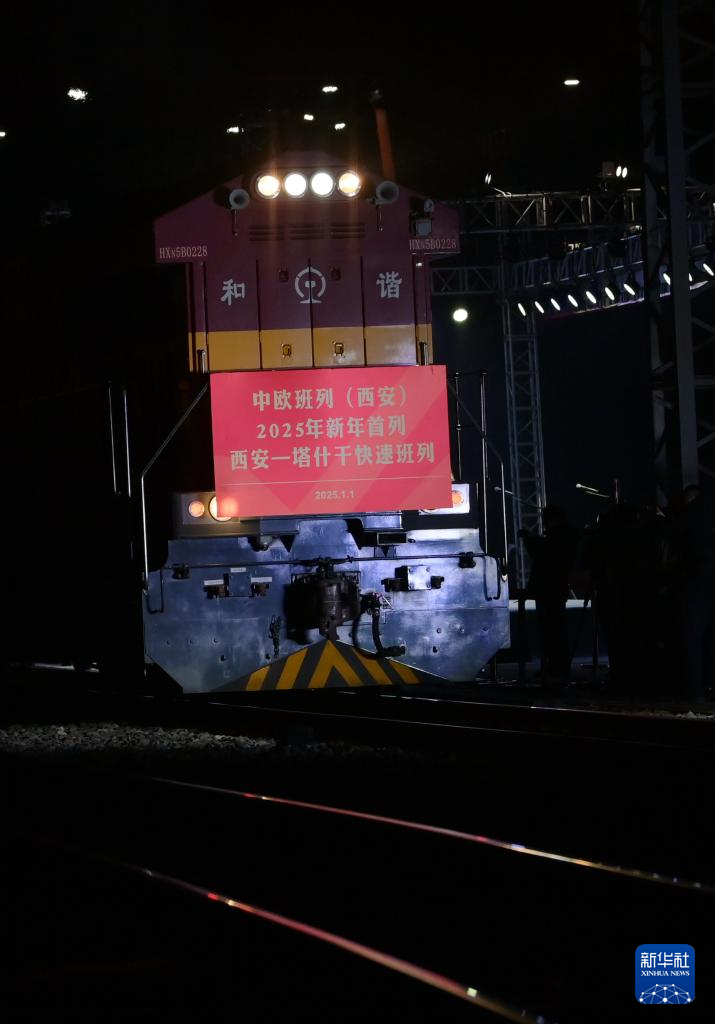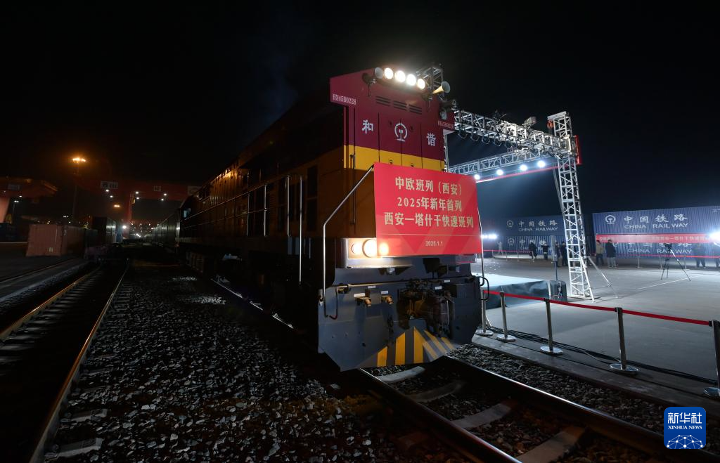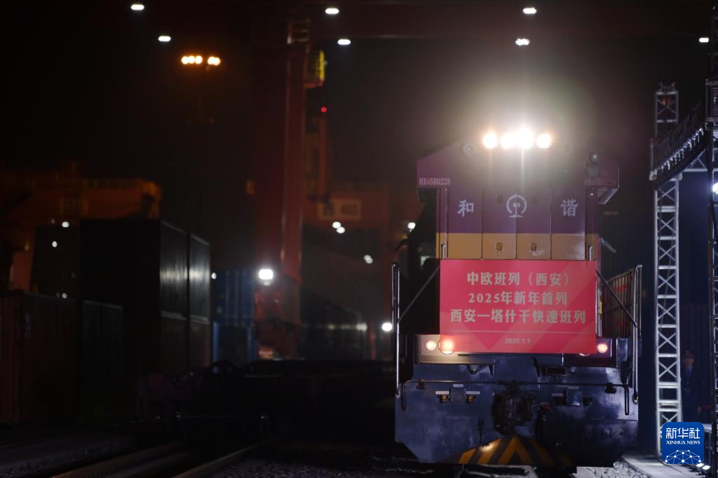 2025年1月1日凌晨,2025年中欧班列(西安)新年首列暨西安—塔什干快速班列从西安国际港站驶出。