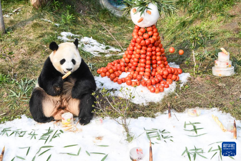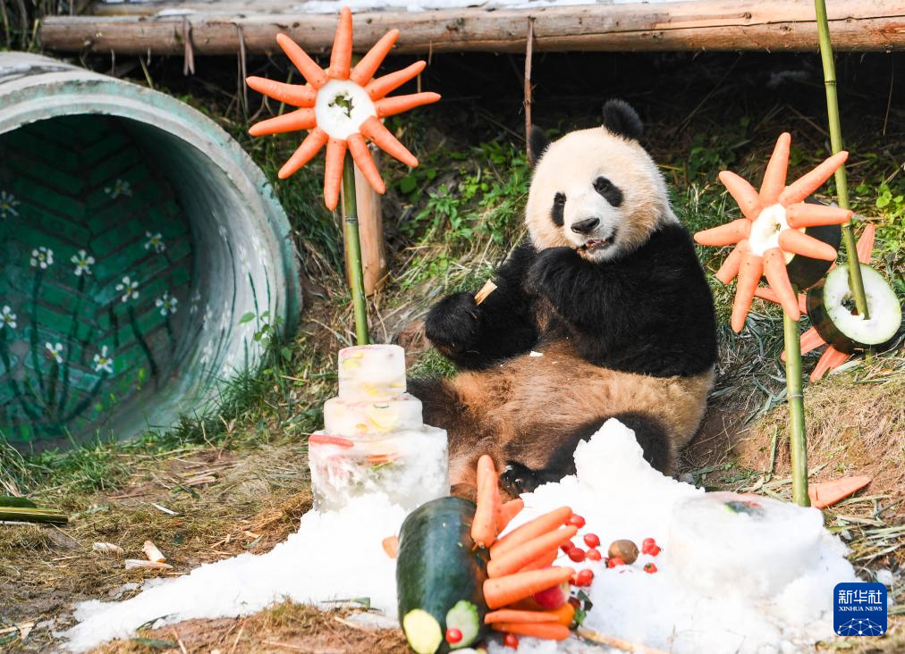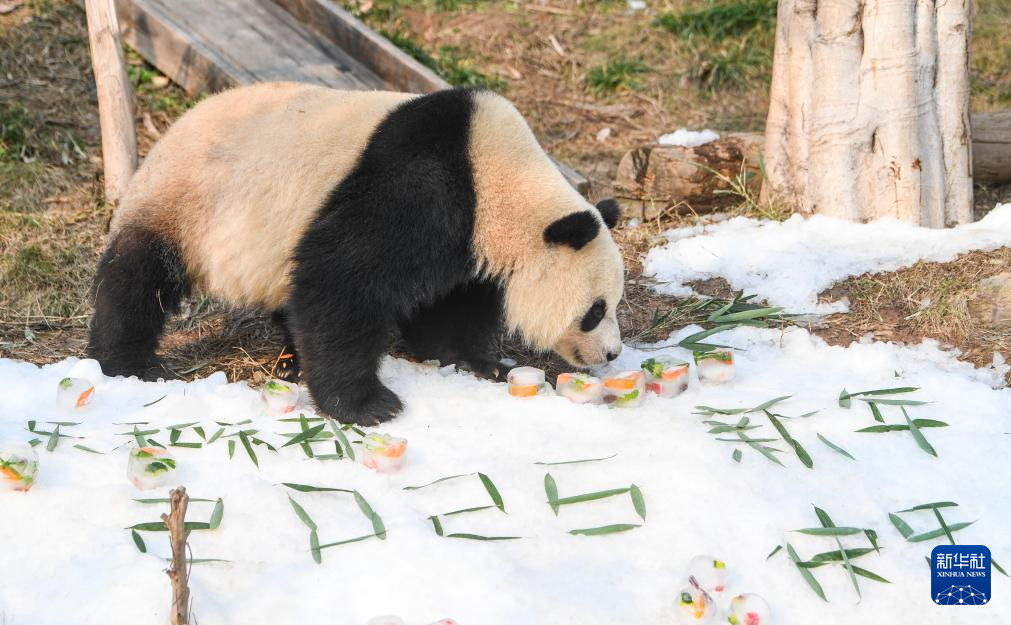 新年第一天,位于重庆市永川区的乐和乐都动物主题乐园为“落户”一周年的青花、青露、爱莲和巧月四只大熊猫举办庆祝活动。园方为大熊猫们打造冰雪环境,加入新年装饰,并为它们准备了丰盛的美食。