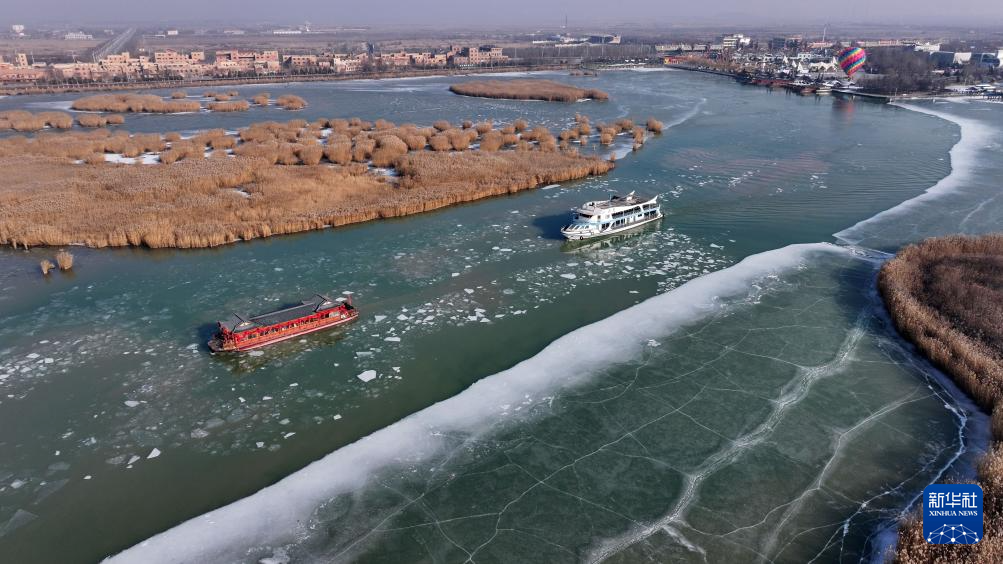 2025年1月1日,游客乘坐游船体验(无人机照片)。