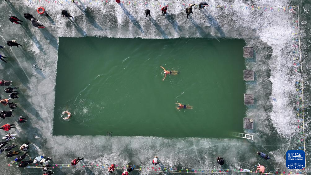 2025年1月1日,游客在观看冬泳表演(无人机照片)。
