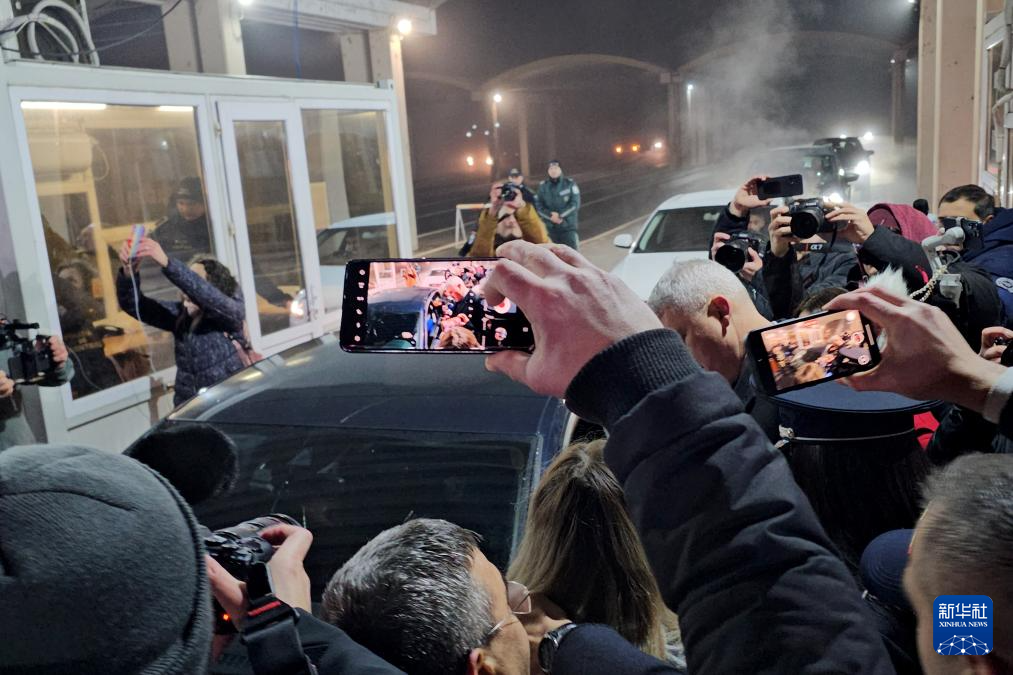 2024年12月31日晚,人们在位于保加利亚鲁塞的边境检查站拍摄记录罗马尼亚和保加利亚之间陆地边境管制取消的现场。