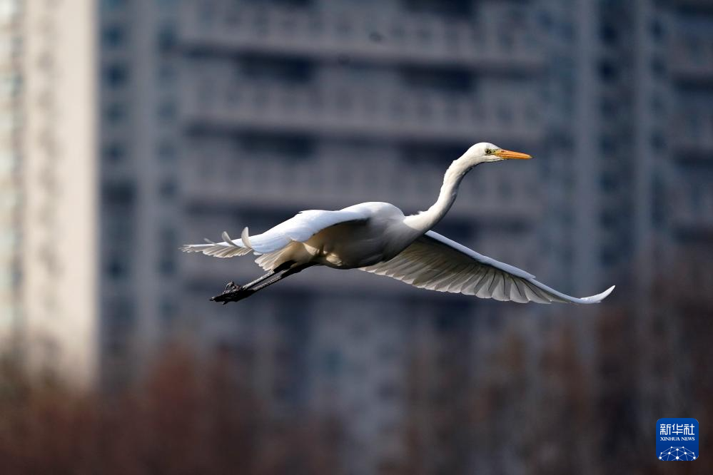 2025年1月1日在太原市汾河拍摄的白鹭。