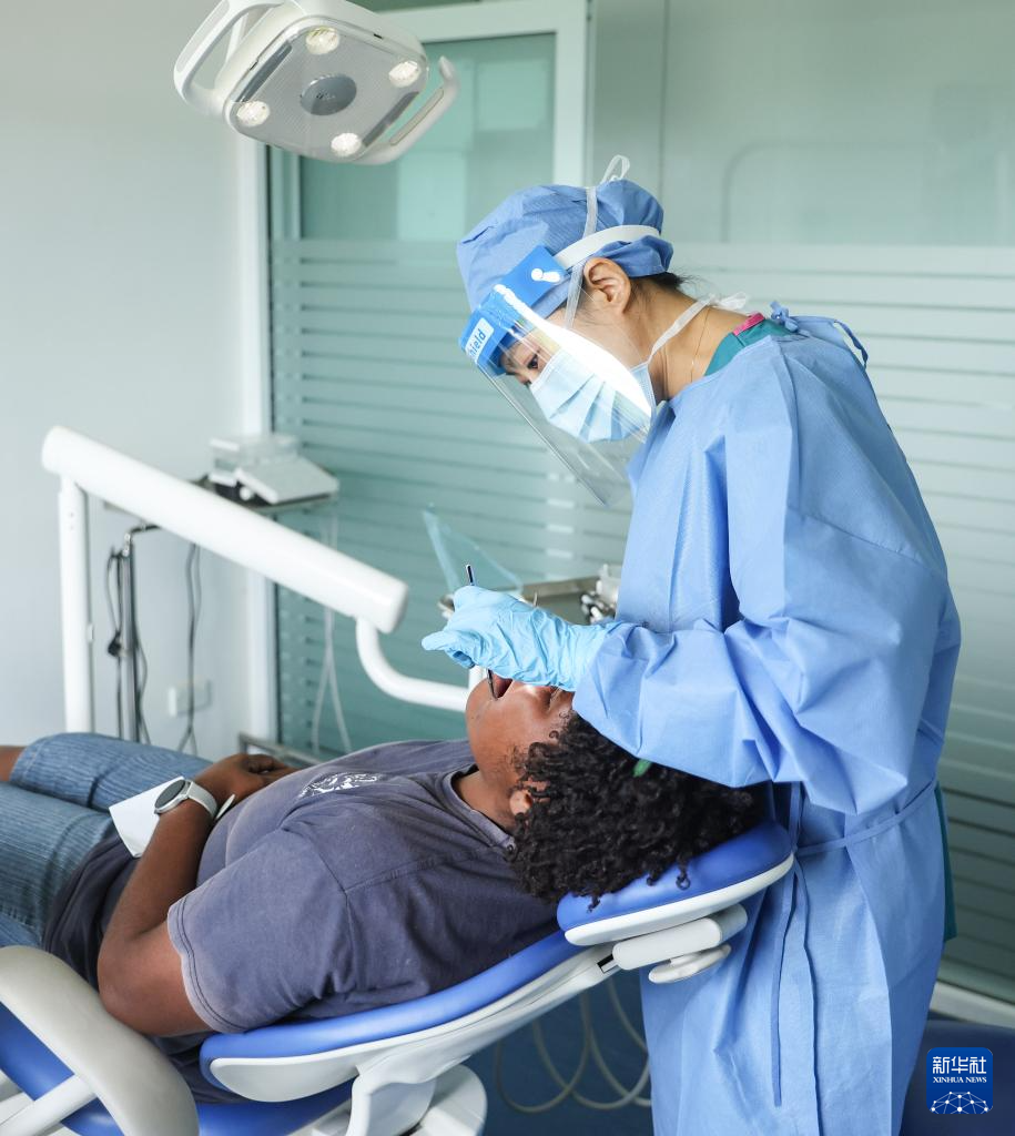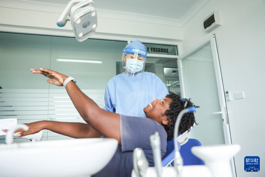 1月2日,在瓦努阿图维拉中心医院,中国援瓦努阿图医疗队口腔科医生李威为患者检查。