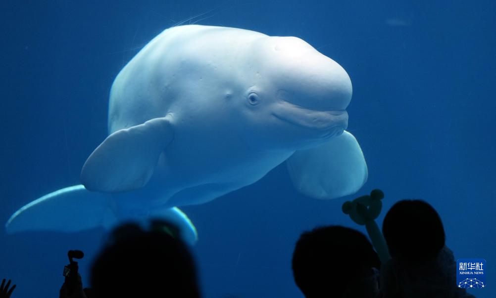 2024年5月22日,游客在辽宁大连圣亚海洋世界观赏白鲸。