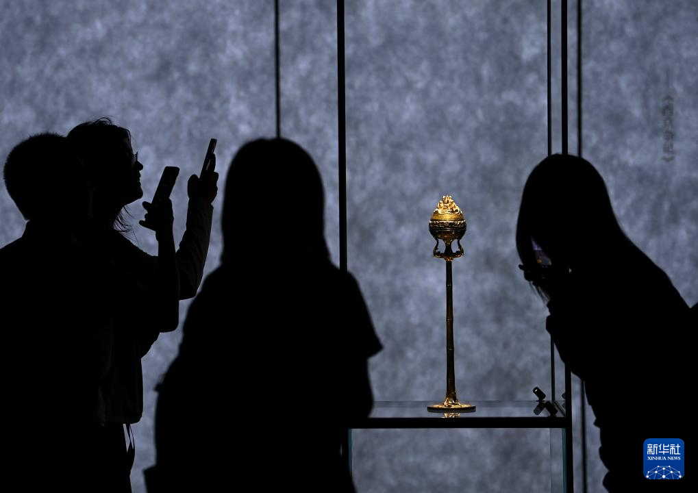 2024年5月18日,在位于西安西咸新区的陕西历史博物馆秦汉馆,观众观看“技与美”专题陈列上展出的西汉鎏金银竹节铜熏炉。