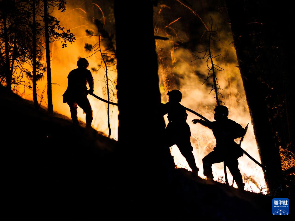 2024年3月21日,四川省森林消防总队消防员在扑救四川省甘孜藏族自治州雅江县“3·15”森林火灾。