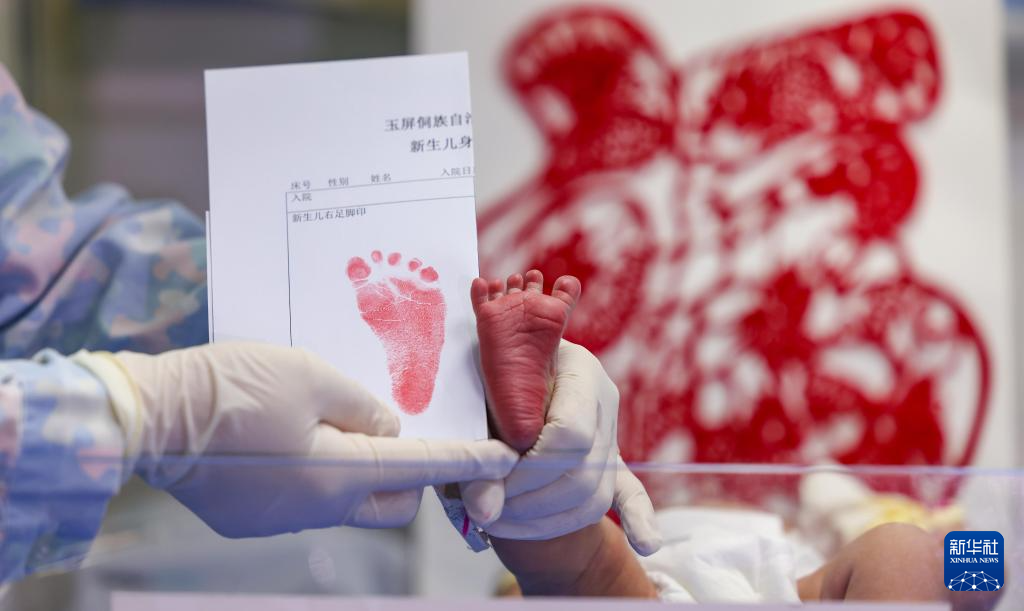 2024年2月10日,农历大年初一,在贵州省铜仁市玉屏侗族自治县人民医院新生儿科,医务人员为一名刚出生的“龙宝宝”留下脚印。