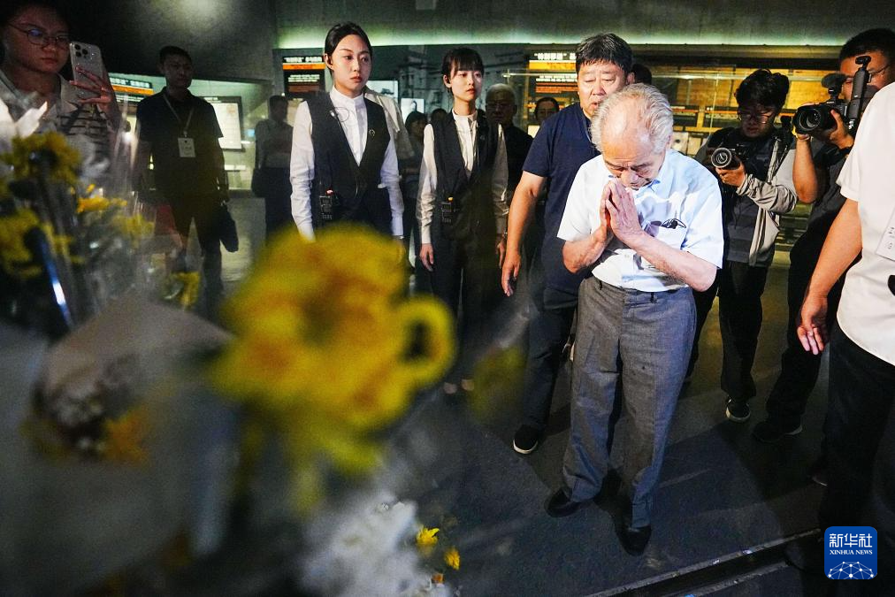 2024年8月13日,侵华日军第七三一部队原队员、94岁的清水英男在位于黑龙江省哈尔滨市的侵华日军第七三一部队罪证陈列馆内的殉难者名单前祈祷。“日本确确实实做了残酷的加害行为,事实就是事实。正视历史,祈愿和平,是最该汲取的教训。”清水英男说。
