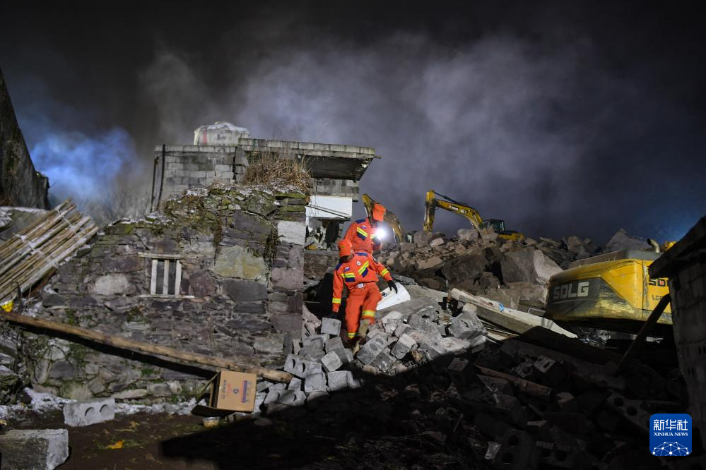 2024年1月23日凌晨,救援人员在云南省昭通市镇雄县塘房镇凉水村山体滑坡现场搜救。1月22日6时许,凉水村发生山体滑坡。