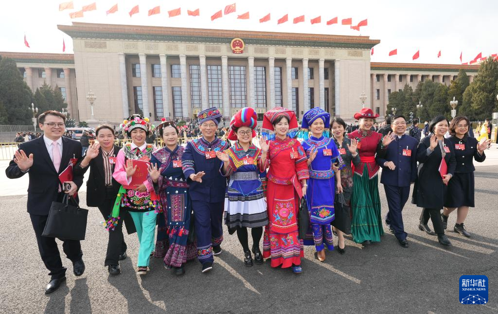 2024年3月11日,第十四届全国人民代表大会第二次会议在北京人民大会堂举行闭幕会。这是闭幕会后,代表们走出人民大会堂。