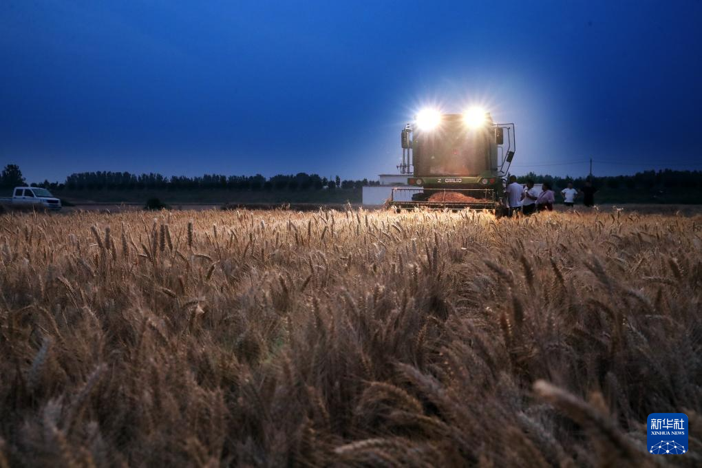 2024年5月25日,河南省周口市商水县汤庄乡吴楼村村民在抢收小麦。