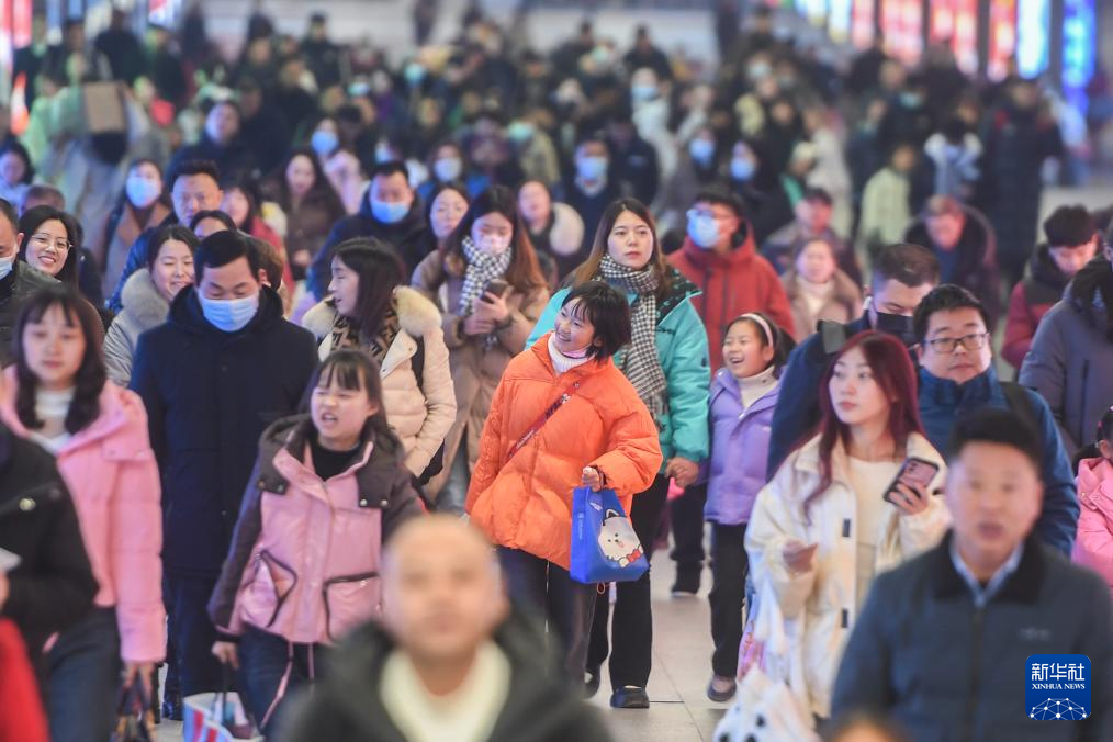 2024年1月26日,春运首日,旅客在湖北武汉汉口火车站出行。