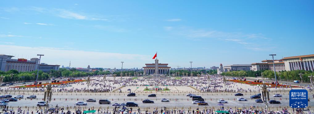 2024年7月17日拍摄的北京天安门广场及建筑群。2024年7月27日,在印度新德里召开的联合国教科文组织第46届世界遗产大会通过决议,将“北京中轴线——中国理想都城秩序的杰作”列入《世界遗产名录》。