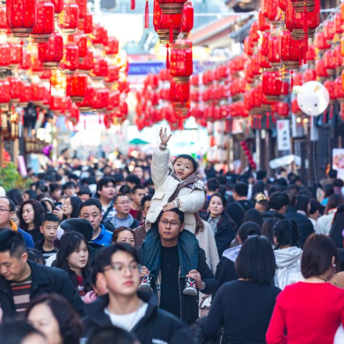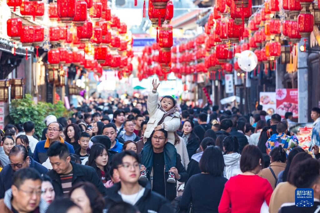 2024年2月10日,农历大年初一,市民在贵州省安顺市西秀区安顺古城历史文化街区游玩。