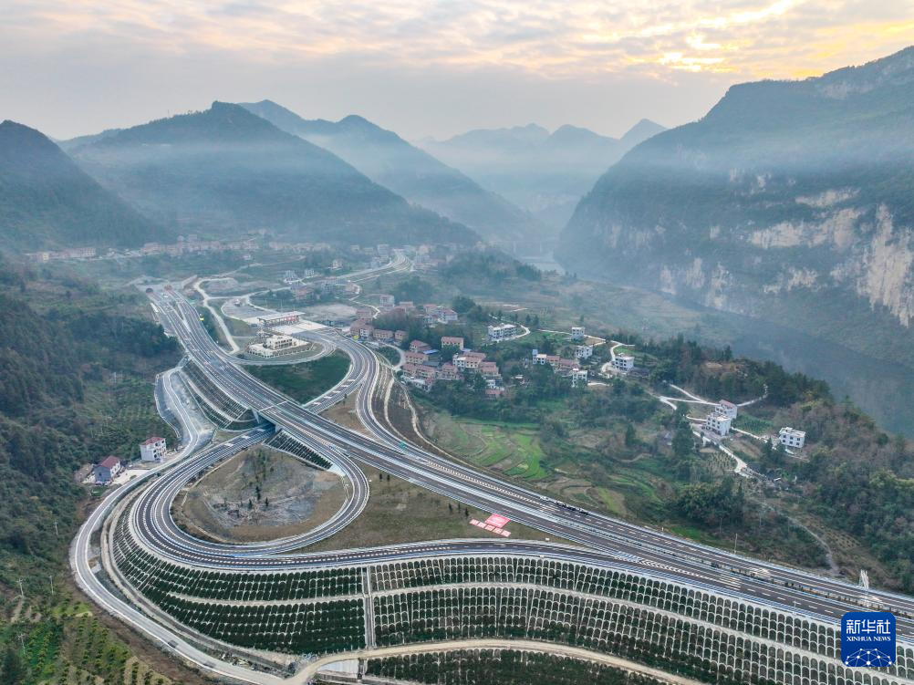 这是1月1日拍摄的渝湘复线高速公路(无人机照片)。