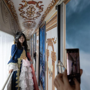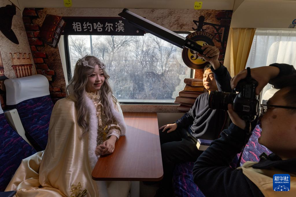 当日,中国铁路哈尔滨局集团有限公司开行首趟冰雪旅拍专列——哈尔滨至亚布力南的K5197次列车。在此列车上,乘客可在不同风格的主题车厢内体验拍照服务。据悉,中国铁路哈尔滨局集团有限公司依托哈尔滨站、亚布力南站等网红车站,设置点位,规划进出站流线,设计主题车厢,为旅客提供多种风格旅拍服饰和拍摄服务,将交通工具升级为旅游新场景。