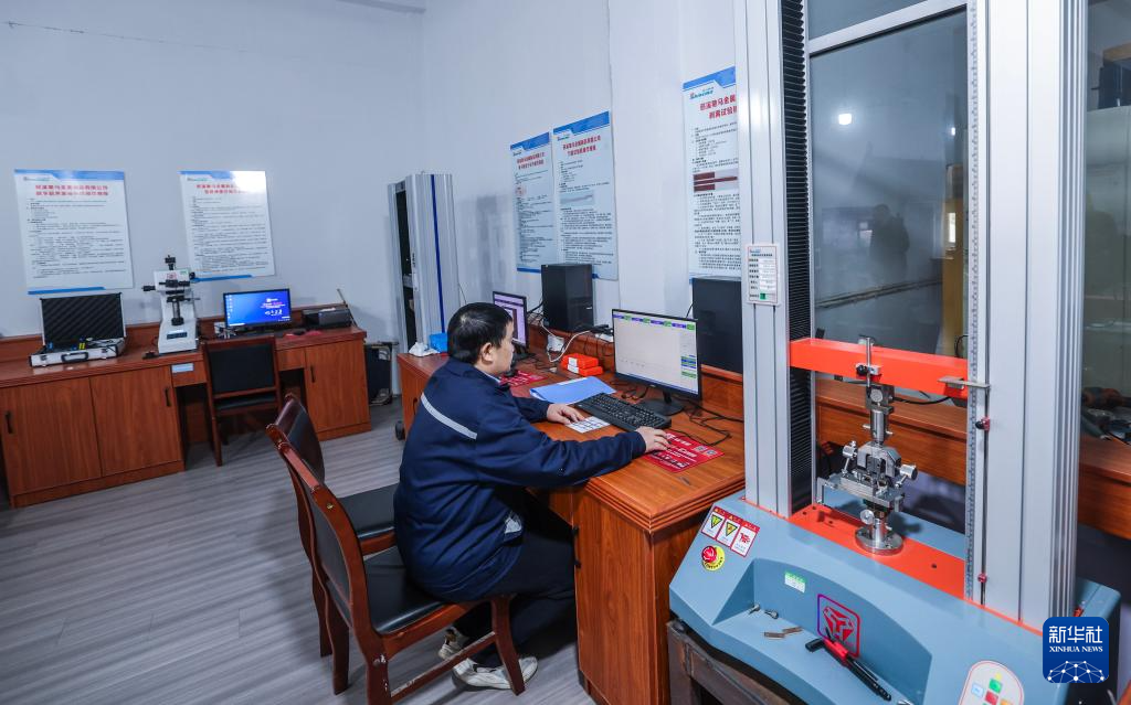 1月2日,在位于慈溪市新浦镇的宁波神马集团有限公司实验室,工作人员在测试企业研发的新材料。