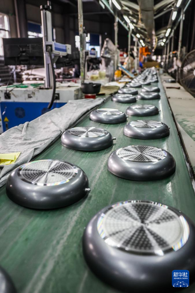 1月2日,位于慈溪市掌起镇的宁波百飞特厨具有限公司的自动化流水线在生产出口欧洲的不粘锅。