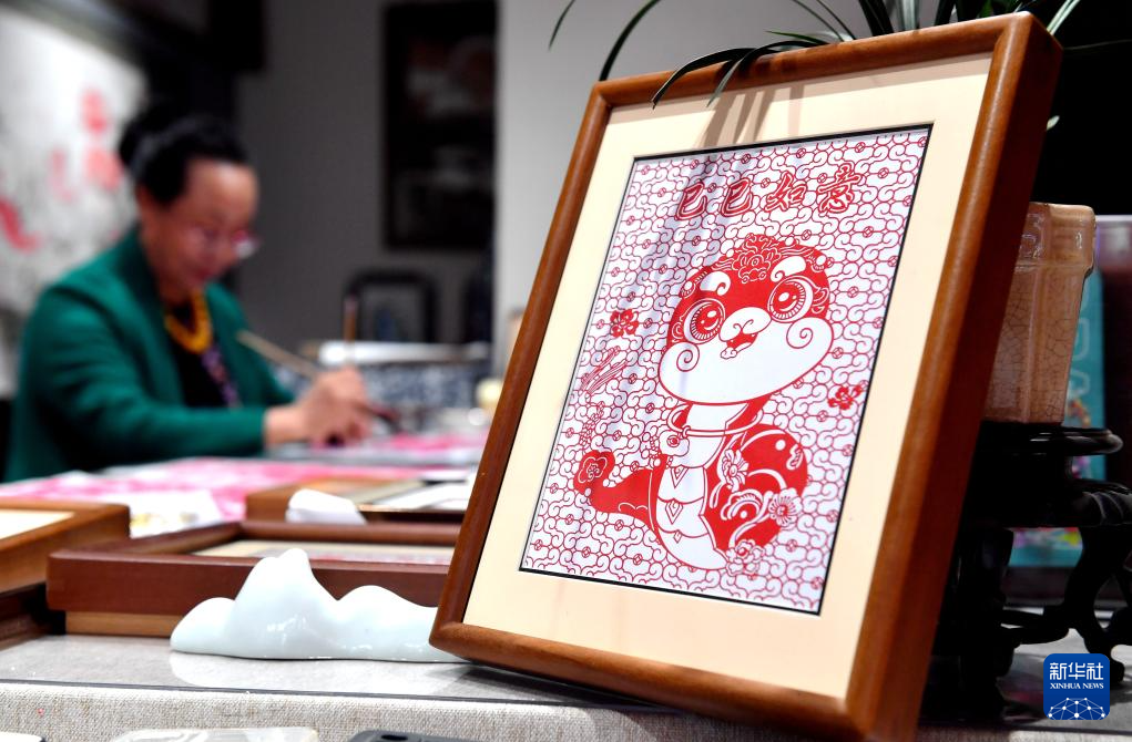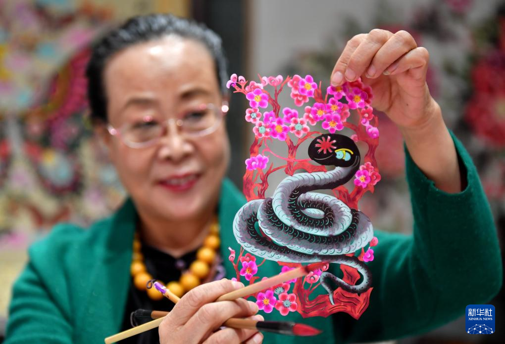 春节临近,河北蔚县剪纸国家级代表性传承人周淑英以蛇为主题,创作系列生肖蛇剪纸作品,表达对新年的祝福,迎接蛇年的到来。