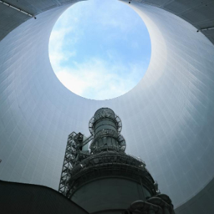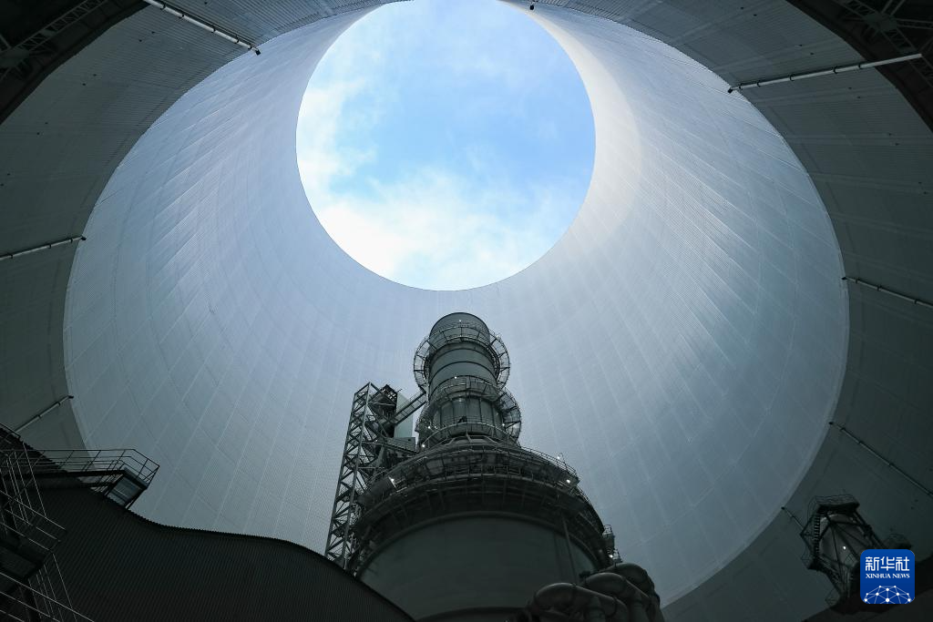 这是1月3日拍摄的华能正宁电厂钢结构间冷塔内部。