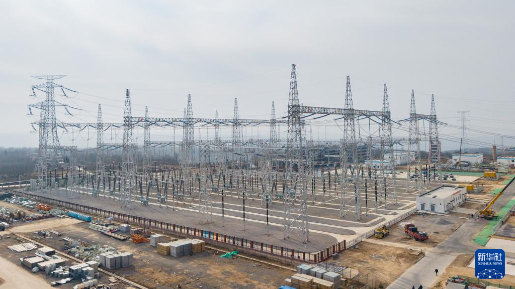 这是1月3日拍摄的华能正宁电厂750千伏升压站(无人机照片)。