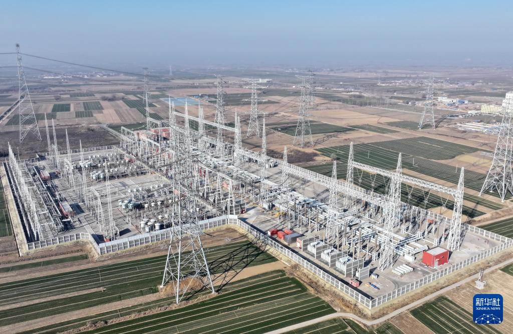 1月3日拍摄的邢台1000千伏特高压变电站(无人机照片)。