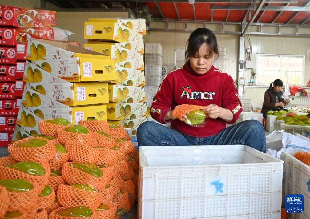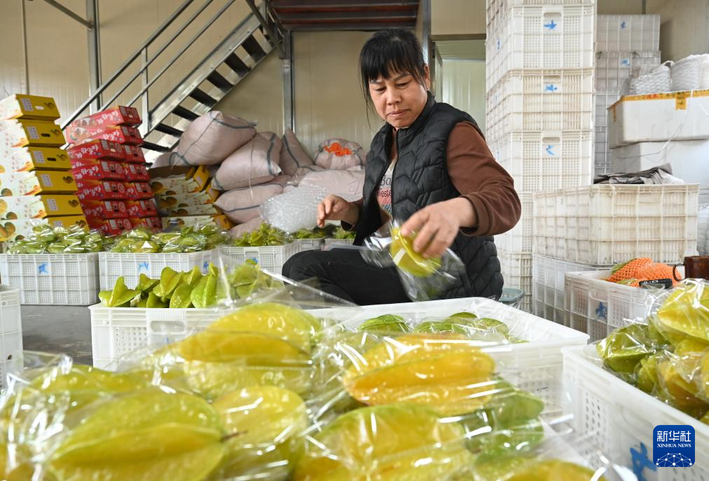 1月3日,村民吴素华在包装杨桃。