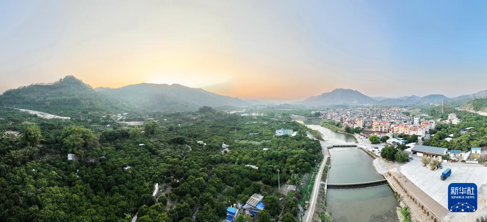 云霄县下河乡下河村的杨桃林和周围的景观(1月3日摄,无人机全景照片)。