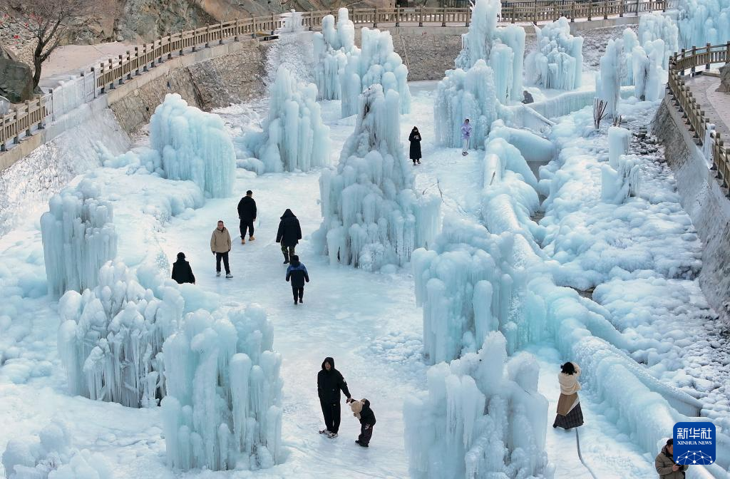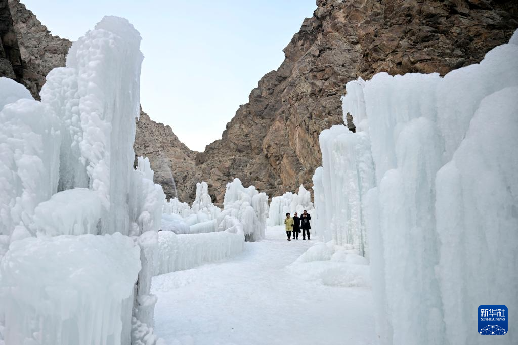 近日,宁夏银川贺兰山岩画景区推出以远古岩画、冰雕、雪雕、冰瀑等为特色的文旅项目,吸引众多游客前来观赏游玩。