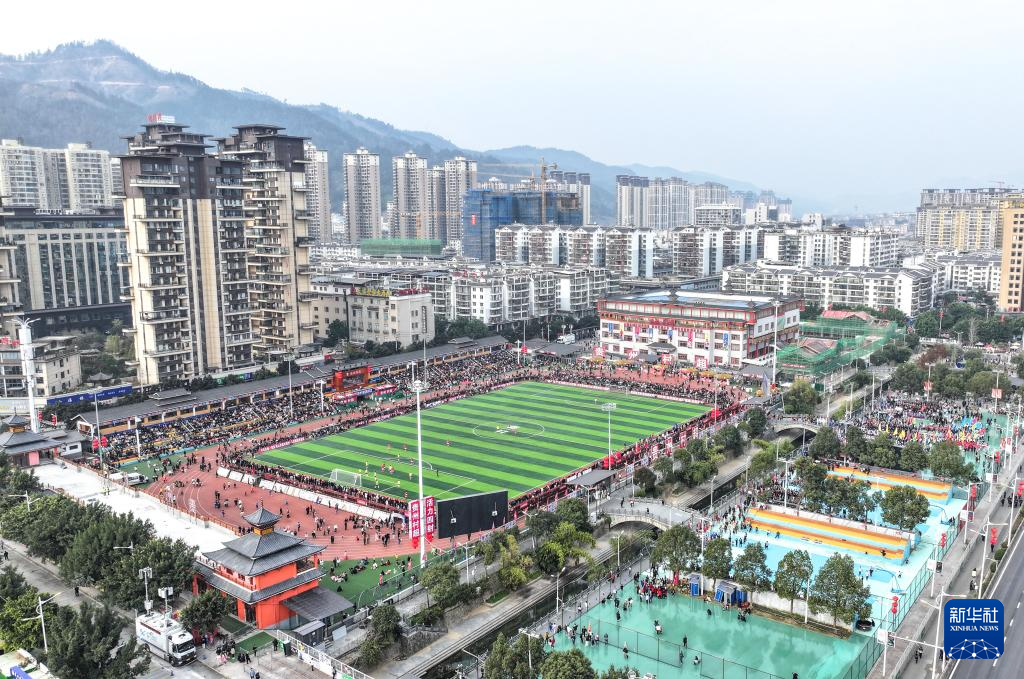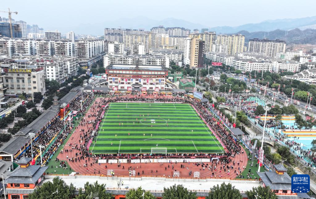 这是1月4日拍摄的“村超”揭幕战现场(无人机照片)。