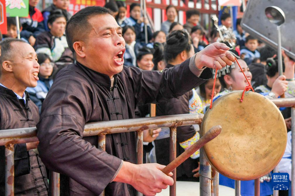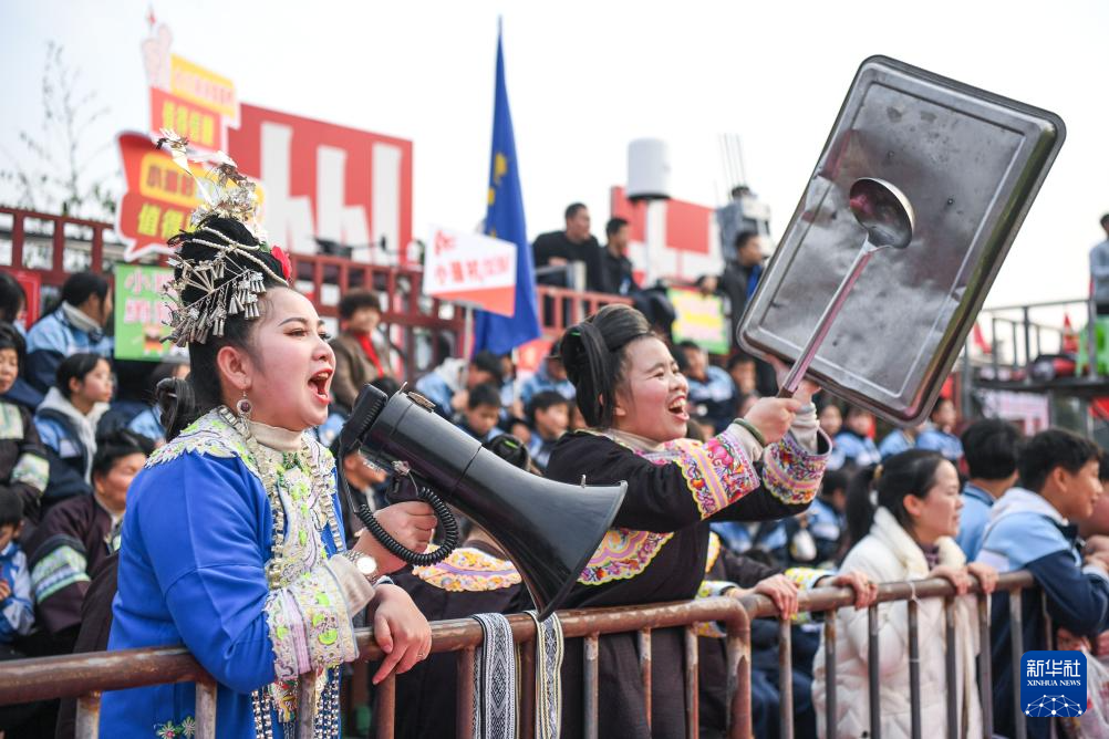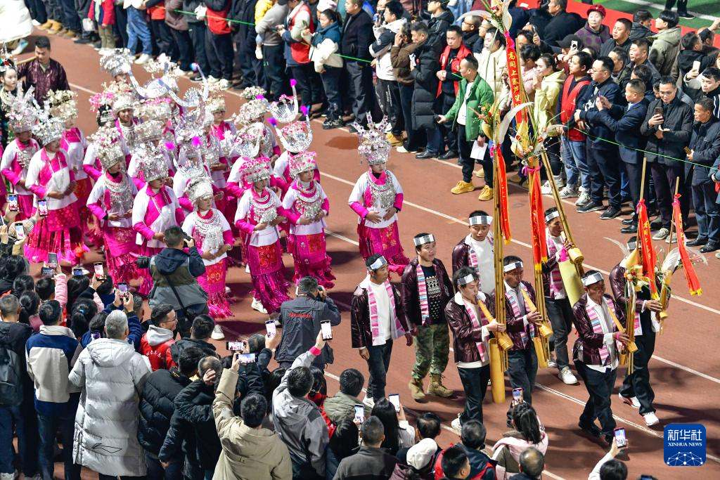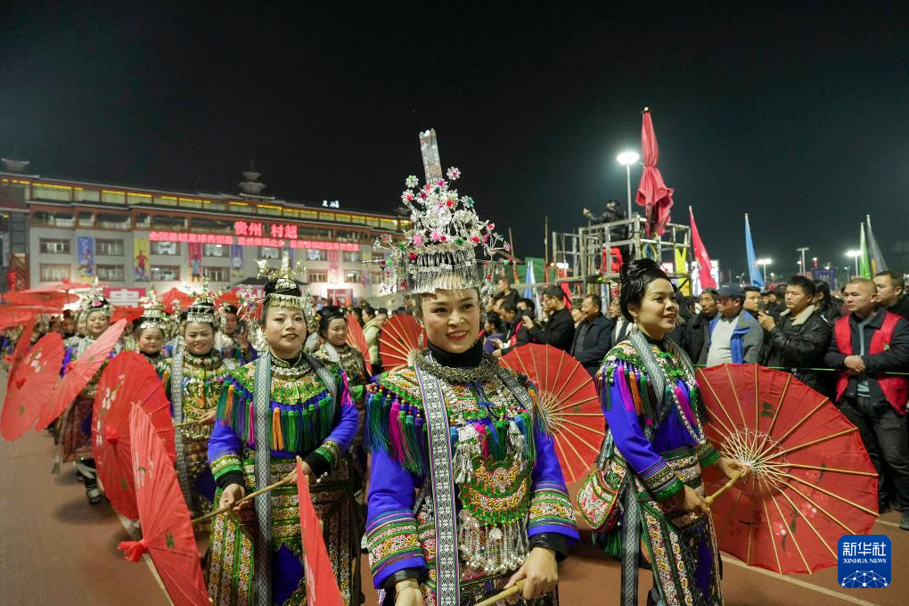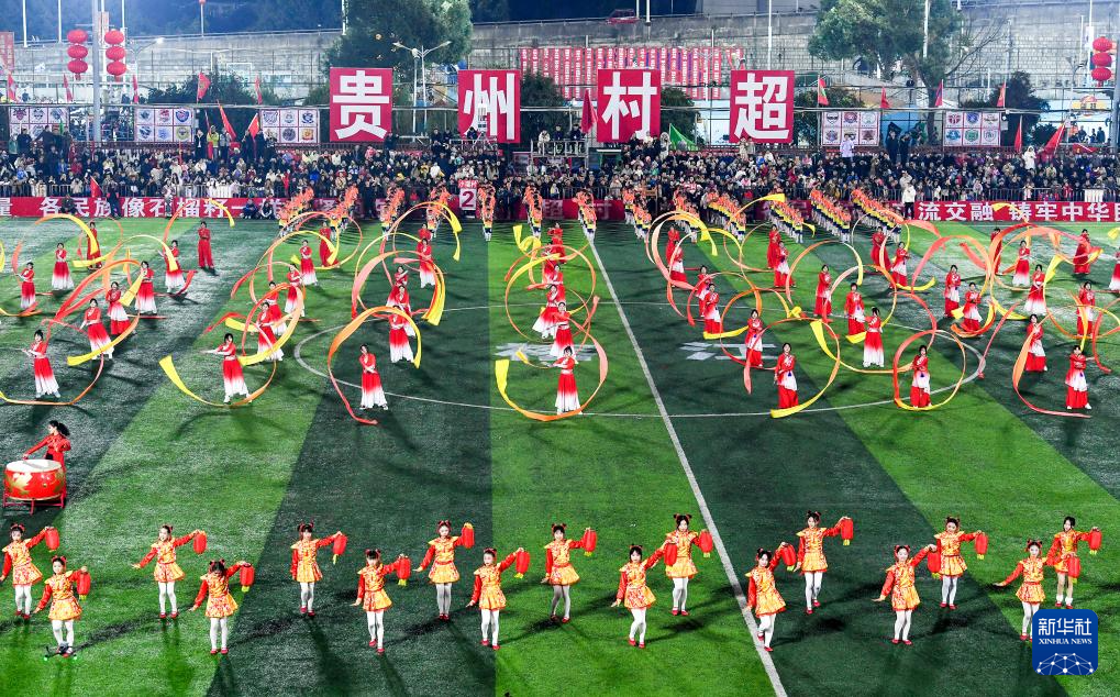 1月4日,人们在“村超村晚”活动中表演非遗节目“多耶”。