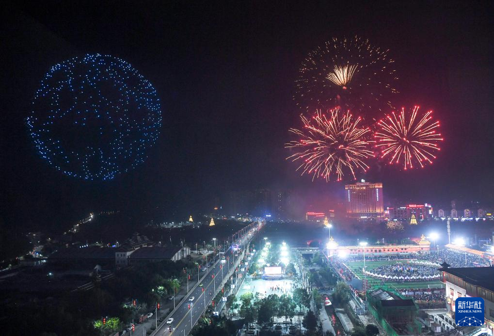 这是1月4日在“村超村晚”活动现场拍摄的无人机表演和烟花秀。