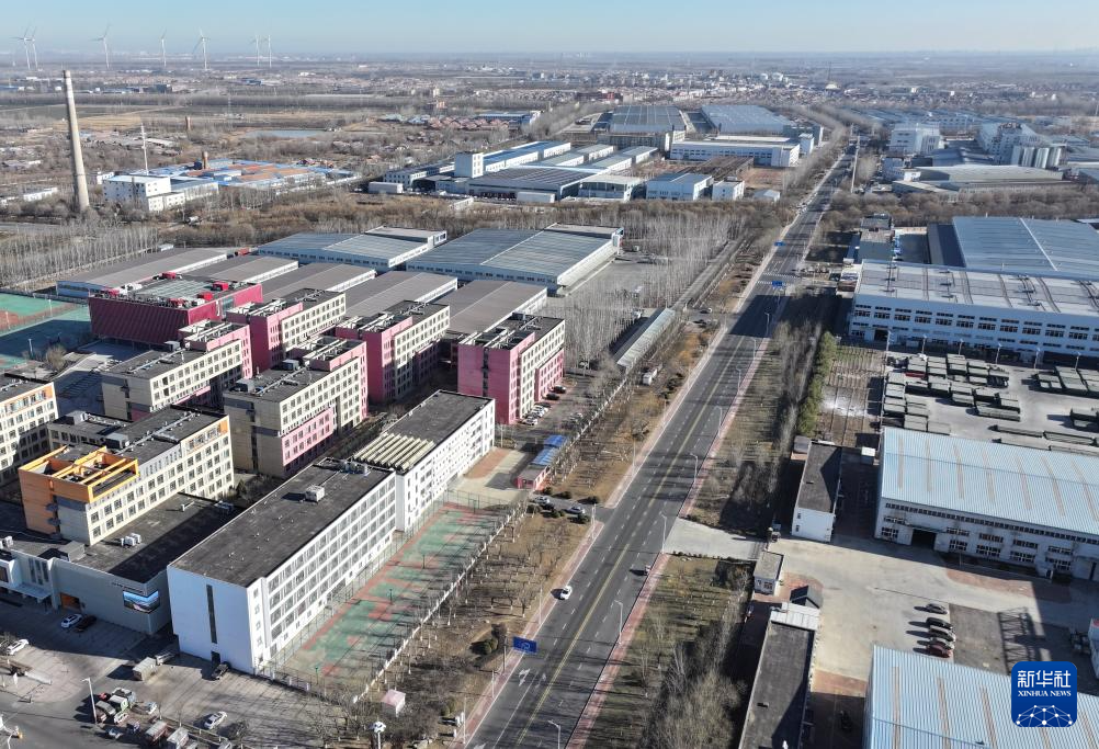 这是从空中拍摄的崔黄口镇一景,地毯企业厂房林立(1月3日摄)。