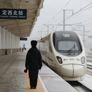 1月4日,一列高铁列车驶出宝兰高铁甘肃定西北站。