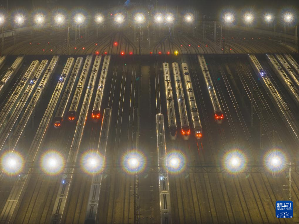 这是1月4日在南京动车段南京南动车运用所拍摄的动车组列车(无人机照片)。