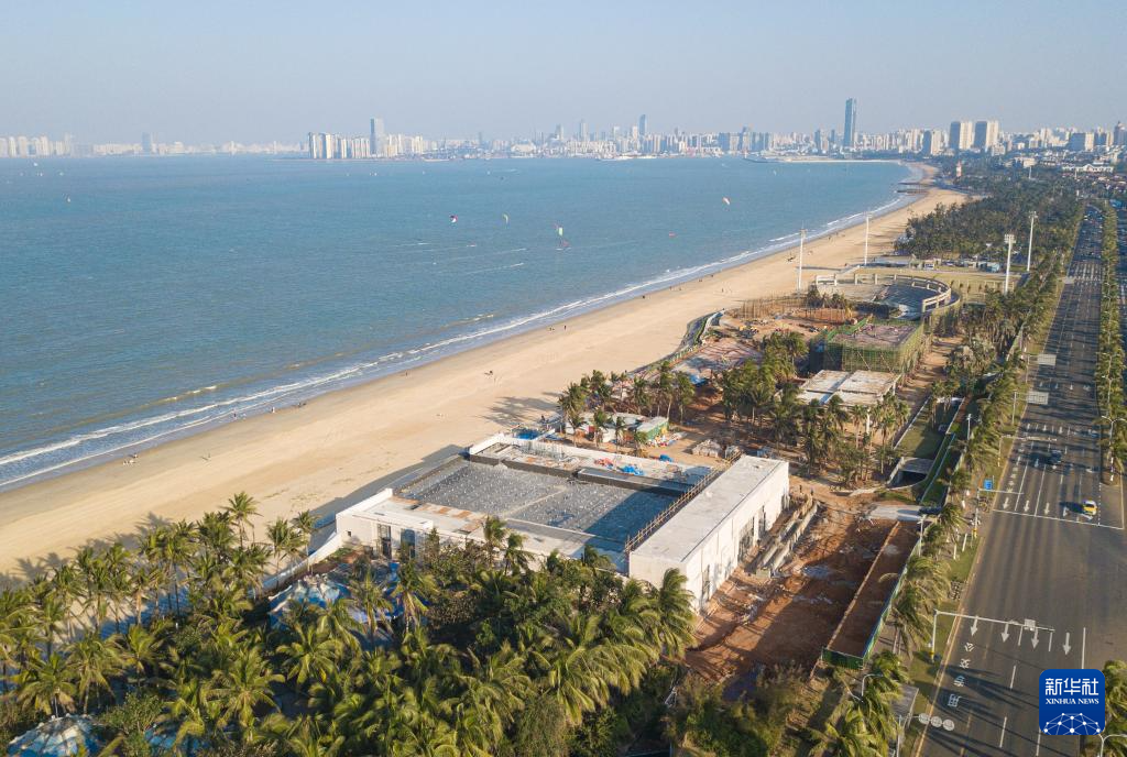 1月3日在海口拍摄的建设中的天迹泳池项目和西海岸景色(无人机照片)。