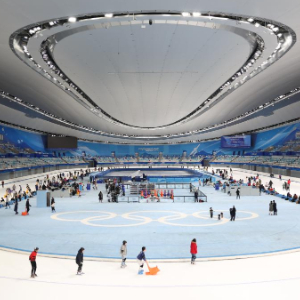 周末,许多游客来到北京国家速滑馆,享受冰雪带来的乐趣。