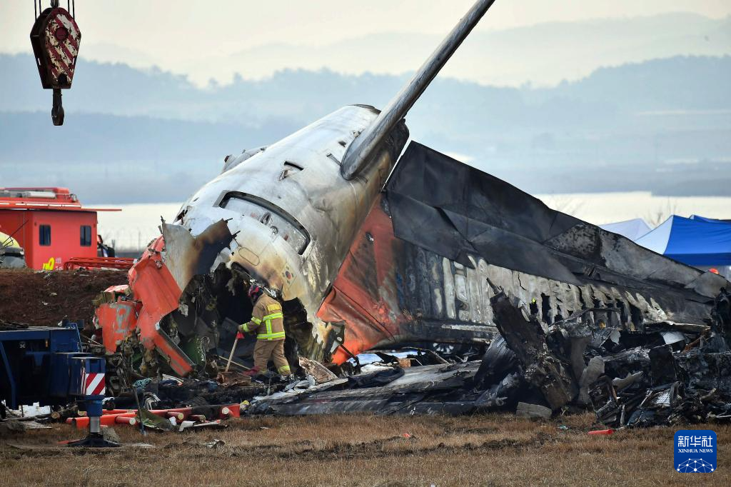 2024年12月30日,调查人员在韩国务安飞机失事现场工作。