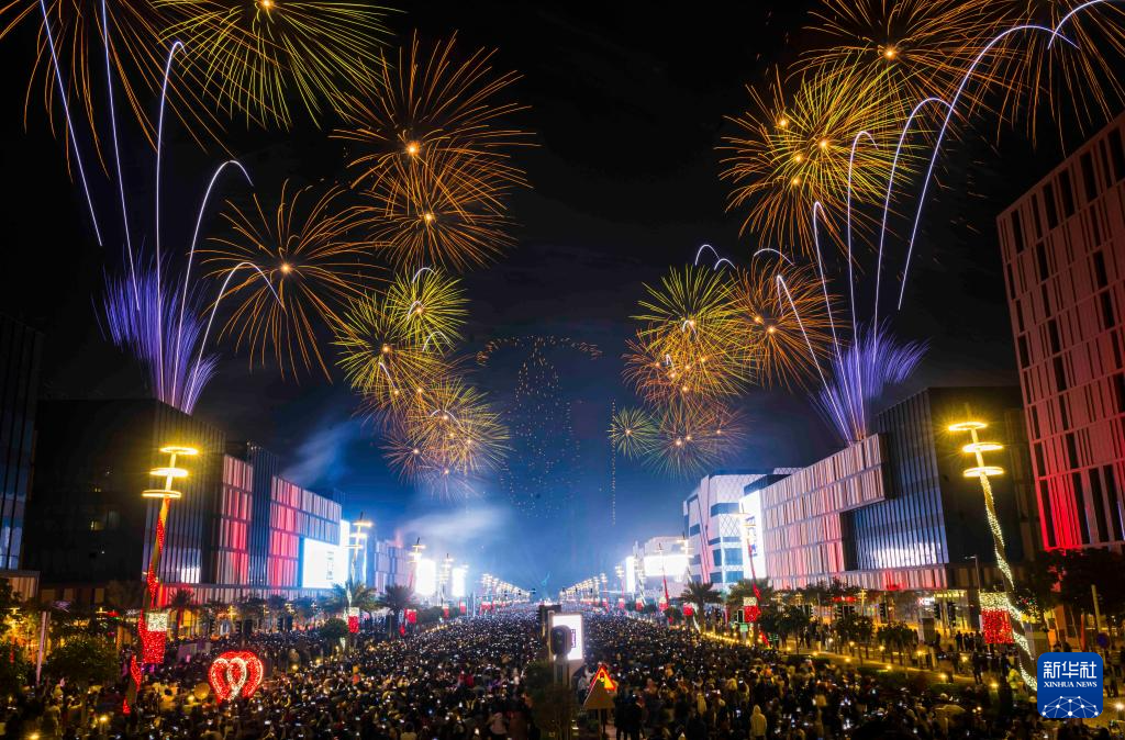 2025年1月1日凌晨,人们在卡塔尔多哈参加迎新年庆祝活动。