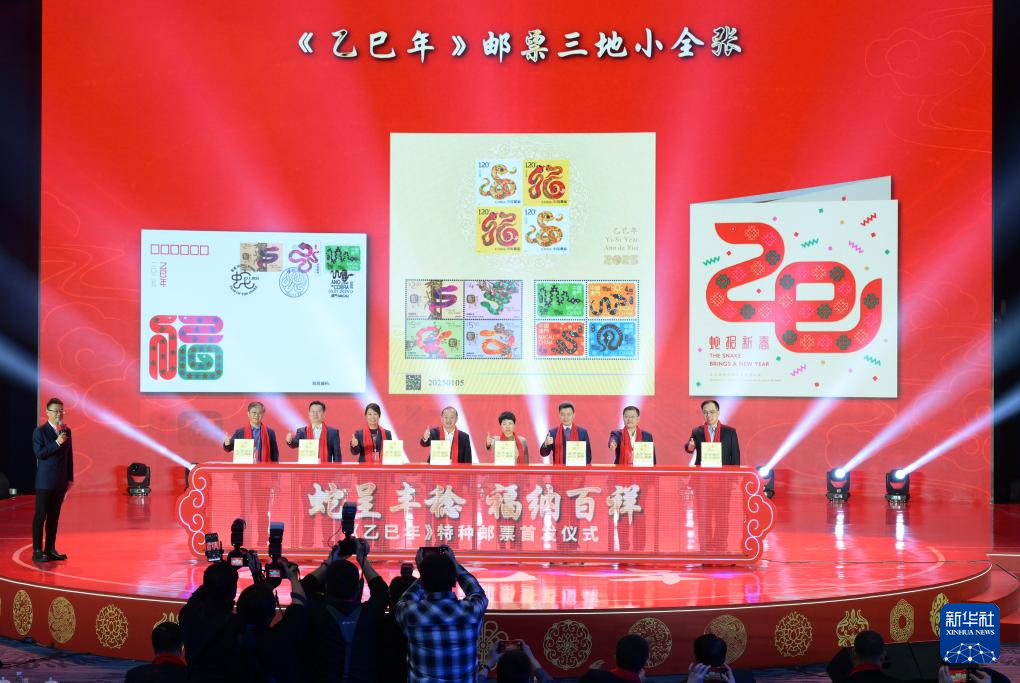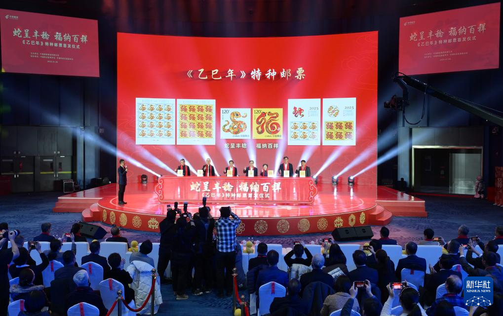 当日,《乙巳年》特种邮票首发仪式在北京举行。《乙巳年》特种邮票1套2枚,邮票图案名称分别为“蛇呈丰稔”“福纳百祥”。即日起,消费者可以在全国指定邮政网点、中国邮政网上营业厅等渠道购买该套邮票。